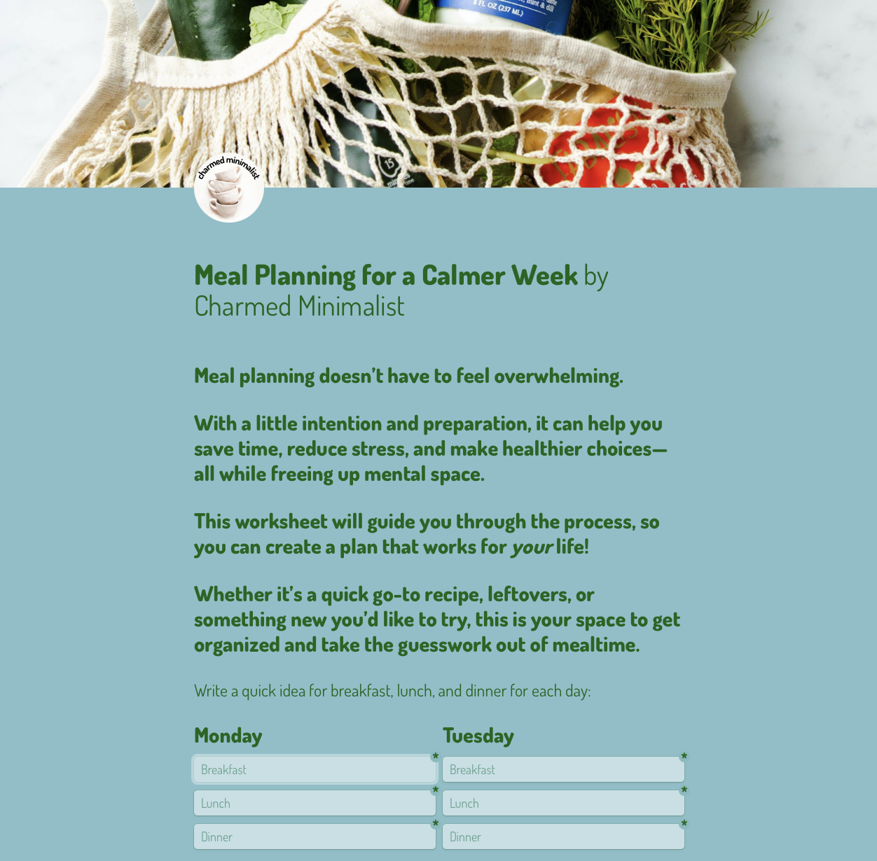 Meal Planning for a Calmer Week Planner by Kara Koon