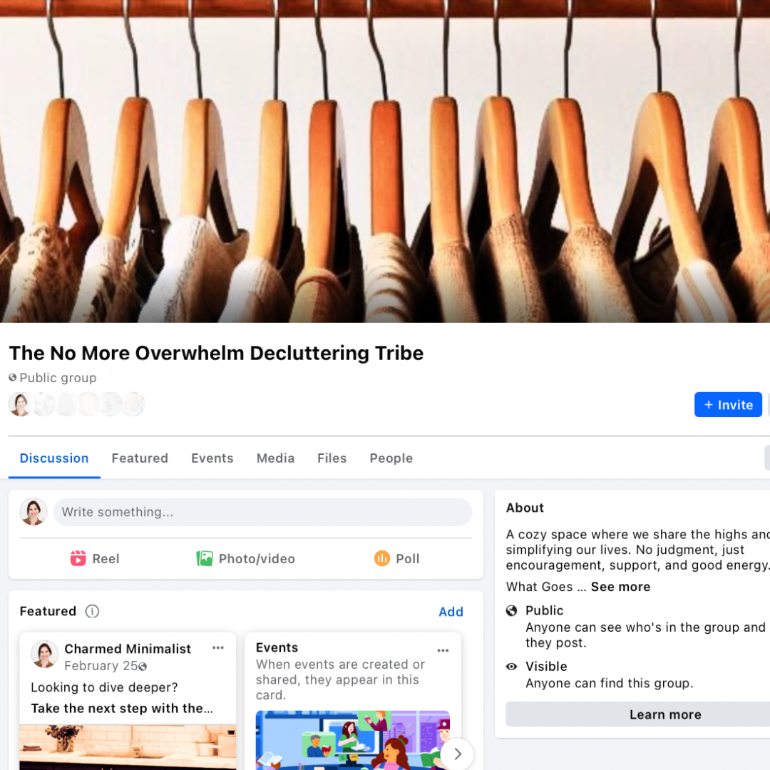 The No More Overwhelm Decluttering Tribe Facebook Group by Kara Koon