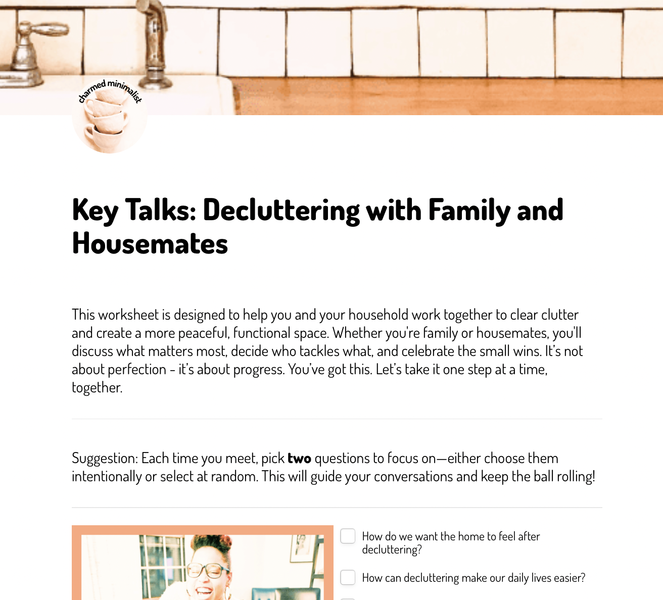 Key Talks: Decluttering with Family & Housemates Worksheet by Kara Koon